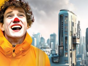 «Язык клоунады всегда обращался к теме исцеляющего Добра, которое возвращает нас в детство, когда чувство счастья и любви было настоящим. Путешествие двенадцати современных персонажей „в поисках счастья“ — и есть тот самый путь в детство, когда любовь и счастье окружали нас. Это спектакль про внутреннего ребенка, который затерялся в Большом городе. И это так близко и понятно каждому! О терапии добра в клоунаде много рассуждает великий русский клоун Вячеслав Полунин. По сути, он и сформулировал новый язык клоунады, создав „Снежное шоу“, которое покорило весь мир. Во многом мы идем в его фарватере».