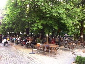 Здесь не навязывают галстуков и не церемонятся, как во Франции, здесь все просто: ресторанные столики и стулья часто вообще заменяют длинные лавки и соразмерные им прямоугольные столы. А каштаны! Раньше, когда пиво просто продавали из бочек и каждый приходил со своей кружкой, чтобы летняя жара не испортила пиво, вокруг подвала сажали каштаны, тень от которых создавала требуемую прохладу. В итоге люди перестали уносить кружки домой, предпочитая наслаждаться напитком в тени деревьев. Так и пошло.