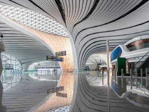 Здание терминала уникального аэропорта площадью 700 000 квадратных метров, спроектированного бюро легендарной Захи Хадид, станет одним из крупнейших и амбициозных проектов в мире. Открытие запланировано на 30 сентября (канун 70-летия образования КНР), но насладиться оригинальными решениями специалистов Zaha Hadid Architects можно уже сейчас в режиме реального времени.