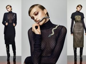 Лаконичные силуэты разбавлены эклектичными принтами, посвященными абстрактному и конструктивистскому искусству, в которые — наподобие калейдоскопа — «заключены» различные кристаллы, геометрические узоры, буйство цветов и орнаментов. Отлитые в бронзе античные силуэты и обнаженные тела символизируют союз двух разных сил, мужского и женского начала. Ящерица напоминает об одном из воплощений Хозяйки медной горы, змей — о Великом Полозе, хранителе золота.