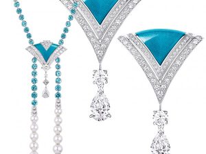 Устремленный в будущее стримлайн-модерн нашел отголоски в новой коллекции высокого ювелирного искусства от Louis Vuitton. Сложные, динамичные и переменчивые формы, составленные из знаковых литер, абстрактных рисунков, символических изображений воды и лотоса — символа вечности, образующие веера и каскады, воплотились при помощи редких драгоценных камней, скрупулезно собранных в различных уголках мира: бразильского турмалина весом 32 карата, 30-каратного австралийского опала, серого жемчуга, синих сапфиров, пронзительно-зеленых изумрудов. Роскошные колье «баядера», браслеты, клипсы и кольца дополнены рубинами из Таджикистана, редкими фиолетовыми сапфирами, цаворитами, напоминающими зеленые бриллианты, турмалинами редких оттенков, а также жемчужинами акоя с неповторимым блеском, похожим на пенный яхтенный след.