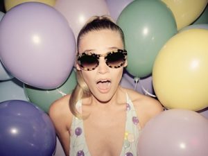 В ее гардеробе ультракороткие юбки соседствуют с платьями из плотного денима, сарафаны из металлизированного шелка — с легкими плащами, расшитыми вручную пайетками и стразами Swarovski, а озорная клетка, воздушные шары и вязаное кружево — с натуральным мехом, окрашенным в нежнейшие лиловый, ментоловый и бирюзовый цвета. Яркими акцентами выступают собственные аксессуары коллекции: солнечные очки в пластиковой оправе, босоножки со сверкающими каблуками, лакированные ботинки с острым носом, а также линейка сумок, в том числе, усыпанных камнями и дополненных длинными ремешками «конвертов», уместных как в вечернем образе, так и «на каждый день».