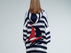 Коллекция, выполненная в классических «морских» тонах (белый, красные, темно-синий), была вдохновлена традиционным дресс-кодом престижных яхт-клубов: правда, в ней вы не увидите ни английских кителей, ни «береговых» пиджаков, ни курток для прибрежного плавания. Вместо них шелковые комбинезоны с капюшонами, джинсы и юбки из белого денима, платья-тельняшки в широкую бело-синюю полоску и пиджаки с крупными золотыми пуговицами, — намек на тот самый традиционный китель. Коллекцию дополняют яркие костюмы в спортивном стиле, а также вечерние платья и юбки в пол, узорно расшитые пайетками.