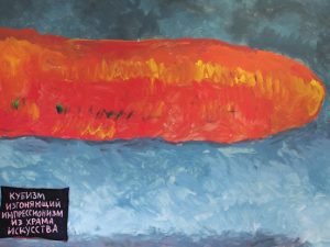 Работы каждого из художников складываются в узнаваемые по манере серии с определенным набором повторяющихся элементов. При этом ряд картин разных «артельцев» имеют одни и те же названия, например, «Бескорыстие и Трудолюбие, изгоняющие из храма искусства Зависть и Кумовство» (Юрий Альберт и Паруйр Давтян) или «Истина, плюющая в колодец», которая предстает в версии Юрия Альберта и Виктора Скерсиса. Художники выстраивают ироничный диалог между собой, со зрителем и со всей историей искусства, множа смыслы и ассоциации. Однако в этом нет дадаистской насмешки или иррациональности. Напротив — смысловые связи между работами и исторические отсылки легко обнаруживают себя, что, конечно, льстит самолюбию зрителя. Но при этом художники не стремятся понравиться публике, потому что в конце концов искусство никому ничего не должно. Оно — игра воображения, в которой абстрактные идеи находят физическое воплощение — чтобы потом развоплотиться вновь. |