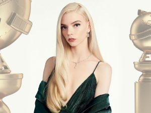 Для «Золотого глобуса-2021» юная красавица и талантливая актриса по совету своего стилиста Лоу Роуча выбрала мерцающее изумрудное платье с впечатляющим декольте, объемное пальто Dior Haute Couture (отсылка к Золотому веку Голливуда) и ослепительные украшения Tiffany & Co. Общий вес бриллиантов в колье Тейлор-Джой — более 14 карат, а венчает их элегантный бриллиант огранки «маркиз». Колье дополняют бриллиантовые кольца и серьги с общей каратностью более 18 карат.