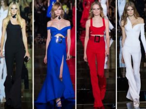 Подчеркнуть изящество пропорций призваны непривычно лаконичные для модного дома силуэты — строгие комбинезоны и брючные костюмы, а также платья миди и макси, сидящие, словно вторая кожа. Асимметричные вырезы и разрезы вторят основной идее дизайнера — воспеть истинную женственность, и привлекают внимание к наиболее соблазнительным участкам: бедрам, линии ребер, узкой талии.