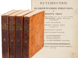 Организаторам «Всемирного путешествователя» удалось собрать уникальную не только для России, но и для мирового рынка коллекцию, посвященную географии и путешествиям. Почти 250 лотов с редчайшими описаниями местностей, альбомы с «Видами сел», старинные атласы — многое не поступало в открытую продажу десятилетиями. Среди самых интересных: многотомник аббата Жозефа де ля Порта (1780-1794 гг.), давший название всему аукциону, «Путешествие в Южной половине Земного шара…» Джеймса Кука (1796-1800 гг.), «Собрание карт и рисунков…» капитана Ю.Ф. Лисянского с его автографом (1812 г.), «Путевые записки… пребывания на Ионических островах в 1835 году» с «Атласом» В.П. Давыдова.