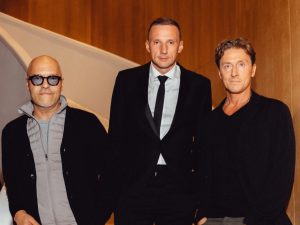 Повод собраться: Гала-ужин ресторана AVRORA от AVA Team — во главе с Антом Пинским, Виталием Истоминым и Артемом Лосевым. Аврора — древнеримская богиня утренней зари, приносящая дневной свет богам и людям, и названный в ее честь проект работает в жанре актуальной классики: fine-dining вечером и комфортная еда днем. Официальным партнером события стал проект девелопера «Главстроя» «Береговой» — и шеф-повара разработали десерт, вдохновленный эстетикой «Берегового»: земляничный кисель с мороженым в тарелке изо льда — вкус летнего вечера на набережной.