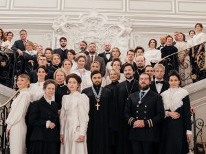 Повод собраться: Памятная встреча «Хозяева дворца — Великий князь Сергей Александрович и Великая княгиня Елизавета Федоровна» по случаю 140-летия Императорского Православного Палестинского общества. Мероприятие прошло при поддержке мецената и ювелира Петра Аксенова, а также компании Russkaya Skazka, которая собрала в себе ведущие отечественные бренды России. Гостям вечера была предложена экскурсия по парадным залам дворца, также гости увидели спектакль-ретроспективу «Евгений Онегин», в котором приняли участие артист театра БДТ им. Г. А. Товстоногова Дмитрий Каргин и артистка театра Комедии им. Н. П. Акимова Александра Дроздова. Именно здесь, в Дубовом зале, в 1891 году, еще будучи Цессаревичем, Николай II исполнил в этом же спектакле роль Онегина, а Великая княгиня Елизавета Федоровна — роль Татьяны.