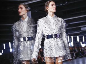 Balmain Оливье Рустена — это парижский шик, скрещенный с уличными трендами: чрезмерными объемами, асимметрией, деконструкцией и обильным «украшательством», агрессивной сексуальностью и даже — очень редко! — андеграундом. Новый сезон не стал исключением: балансируя на грани китча, дизайнер уверенно выводит кричащую роскошь на новый уровень, добавляя ей панк-эстетики. Шоу завораживает с первого же выхода модели — в твидовом комплекте, отделанном перьями, заклепками, золотой нитью и сверкающей сеткой. Дальше больше — на подиуме мелькают ажурные серебристые куртки, косухи, усыпанные остроконечными шипами, кожаные комбинезоны и лакированные ботфорты. Рустен и не пытается держать себя в руках: он смешивает цепи, пайетки и многослойные драпировки, рассыпает горсти стразов и кристаллов, использует бахрому, искусственный мех и прозрачный гипюр. И тут же — костюмы из денима, не менее утрированные — с длинными летящими плащами, огромными бантами и плечами в стиле 1980-х, подчеркивающими узость талии. Ни жеста в простоте: брюки-бананы выступают в паре с латексным корсетом и болеро из сиреневых роз, полупрозрачный тренч из органзы дополняет покрытые ПВХ джинсы, а на пластиковом каркасе-подъюбнике расцветают бутоны неведомых растений. Вечерний блок pret-a-porter лишь немногим уступает кутюрной коллекции: в нем представлены и мини с архитектурными деталями, и платья-кейпы с сотнями оборок, и традиционные платья в пол со сверкающими инкрустациями. А еще — целое ассорти смокингов на любой вкус, атласные кроп-топы с фигурными складками, блестящие латексные сарафаны и баски, а также завораживающий наряд из черных пайеток со шлейфом на белой шелковой подкладке. Вот чего нам так не хватало на «Оскаре»!