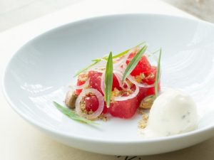 Для знакомства с кухней Le Du выбирайте сет из четырех блюд. Это позволит вам заказать пару закусок, основное блюдо и десерт из меню a la carte.