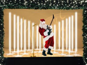 Британцы же подтверждают свой статус бунтарской столицы: в этом сезоне универмаг Selfridges украшен в стиле глэм-рок: изготовленные на 3D-принтерах Санта-Клаусы принимают излюбленные позы рок-звезд (от Фредди Меркьюри до Дэвида Боуи), винтажные микрофоны отливают блеском сотен кристаллов Swarovski, а «задники» витрин декорированы пятью километрами сверкающей бахромы. Поистине рок-н-ролльный размах!