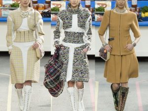 Самый долгожданный показ на парижской модной Неделе для меня, несомненно, Chanel. Это всегда необычно, красиво и запоминается надолго! Вчерашний показ был выше всех похвал! На приглашении было написано: Chanel shopping center. Так все и было: модели как будто пришли за покупками в супермаркет, с корзинками и корзинами (конечно же, от Chanel). В коллекции представлены классический твид, блестящие леггинсы, спортивные сеты с дырками. Мне очень понравилась «покупательница» в розовом твидовом костюме, шляпке и высоких кроссовках — еще один будущий тренд. Эта клиентка импровизированного супермаркета шла под руку со своим спутником, который нес пакеты Chanel. Создавалось ощущение, что они только что совершили приятный шопинг в бутике и пришли на шопинг продуктовый. Эта парочка меня впечатлила!