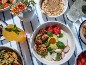 Самые колоритные завтраки в Москве ищите в греческом ресторане «Афина» Антона Пинского, Виталия Истомина и Артема Лосева на Большой Бронной. Тут приятно пить кофе с халуми и медом, макать кефтедес в дзадзики и вдыхать запах горячего пирога с фетой. Гостей ждут с 9 утра: пекут душистые лепешки, готовят глазуньи и омлеты, жарят халуми и драники. А с 12:00 до 18:00 действует еще одно утреннее меню — для тех, кто тусил всю ночь и завтракает «чуть позже»: тут и глазунья с фланк-стейком и тартаром из овощей, и классический омлет со шпинатом, и пироги на сырных лепешках, и оладьи из креветок со скремблом, и тефтели кефтедес в дзадзики и хумусом из нута с жареными грибами и пашотом.