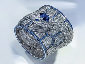 Это самые дорогие часы из всех, когда-либо производившихся Bvlgari: их стоимость составляет почти два миллиона евро! Акцент — на великолепные камни: 10-каратный цейлонский сапфир огранки «подушка», украшающий голову змейки, чистейшие бриллианты, общий вес которых превышает 63 карата, и 32 карата сапфиров (674 граненых камня пронзительно синего цвета), инкрустированных в браслет. Вдохновленные старинными драгоценностями и гладиаторскими боями, часы напоминают манжету, которую обвивает змея, скрывающая у себя во рту циферблат. Это уникальное произведение высокого ювелирного искусства, выполненное в единственном экземпляре.