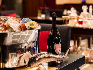 Знаменитый классической русской кухней, полутора десятком видов икры и более полусотни наименований водки «Икорный бар» в «Гранд Отеле Европа» претерпел значительные изменения, коснувшиеся и атмосферы заведения, и гастрономической составляющей. В подлинных интерьерах конца XIX века с эклектичным шиком звучит sophisticated jazz, разместилась лаконичная мебель, над модернистской сервировкой стола работал бывший стилист Dior, норвежский дизайнер Пер Спук. А главного героя меню — икру, которой теперь ни много ни мало 15 видов, включая золотую икру иранских осетров-альбиносов, продукцию российских фермерских хозяйств и один вид икры из Армении, — будут сочетать с шампанским Dom Perignon.