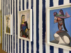 Для воплощения этой идеи в реальность дизайнер собрал уникальную коллекцию произведений Пикассо, которые охватывают весь творческий путь художника и демонстрируют разные техники выполнения от живописи и скульптуры до керамики и гравюры. Необычно оформлены залы: где-то постелили ковры, а где-то на стены нанесли красочные орнаменты. В оформлении в том числе присутствует много полосок, которые являются визитной карточкой бренда Пола Смита, а еще их активно использовал сам Пикассо в шедеврах 1930-х годов.