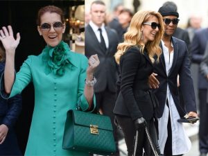 Селин Дион в Céline, в платье Balenciaga и жакете Saint Laurent, в Gucci