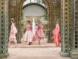 Обращаясь к наследию прошлого, дизайнер переосмысливает наиболее иконические фасоны Дома, созданные еще при жизни великой Мадемуазель, но делает их более архитектурными и нарочитыми. Не боясь упреков в старомодности, Карл Лагерфельд обращается к концу 1980-х — началу 1990-х годов, предлагая сочетать шелковые блузки с отложным воротничком и пышные атласные юбки, а также реанимируя рукава с воланами, «опущенную» линию талии, простроченные плиссировки и длину до щиколоток. Отдавая дань уважения зрелым клиенткам Chanel, он не забывает и о поколении миллениалов, которых называют новыми потребителями люкса: для них в коллекции представлены сверкающие комбинезоны, расшитые серебряными блестками и кружевом; мини-платья с бисерной сеткой; «кукольные» сарафаны с тюлевыми драпировками; и целая линейка потенциальных свадебных образов, венцом которой стал брючный костюм со шлейфом из кипенно-белых перьев.