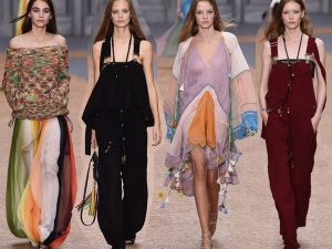 Стилистические решения подчеркивали прически и макияж моделей: художественно растрепанные распущенные волосы, идеально-ровная кожа и естественный румянец, — девушке Chloé не нужны тонны косметики для того, чтобы подчеркнуть свою натуральную красоту.