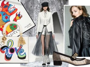 Не обошлось и без брутальных образов с кожаными байкерскими комбинезонами и массивными плащами. Не сходя с излюбленной дорожки феминизма, Мария Грация вдохновилась работами французского скульптора, художницы и борца за права женщин Ники де Сен-Фалль — олицетворения эпохи диско. Принты, повторяющие ее знаменитых фантастических рептилий и насекомых, поселились на шелковых платках, сумках, свитерах и платьях из тюля. Но — к сожалению или к счастью — купить коллекцию целиком кому-либо вряд ли удастся, в связи с чем я задумалась и решила выбрать предметы гардероба первой необходимости. Без них жить, конечно, можно, но с ними куда интереснее.