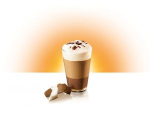 Порция: 110 мл (бокал для коньяка) — 1 капсула Гран Крю Arpeggio или Decaffeinato (40 мл, 1,5 жидкой унции) — 3 чайные ложки вспененного горячего молока — 1 измельченный лист свежей мяты — 1 шарик малинового мороженого Приготовление: 5 минут Уровень сложности: легкий