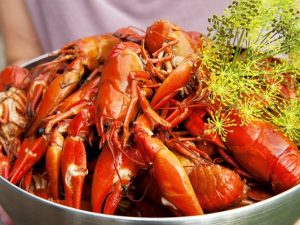 каждый день с 14 по 21 августа — музыка, танцы, уличные представления и горы вареных раков, которых едят прямо на накрытых столах на улицах города.