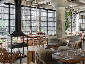 Dacha Gastropab сделан по схожей схеме — большой, красивый и всем понятный. 180 посадочных мест — ресторана такого размера у Lucky Group еще не было. Кажется, что внутри легко поместятся сразу две-три Lucky Izakaya Bar или целых пять-шесть Koji. И столы стоят по-настоящему далеко друг от друга.