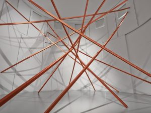 Элисон Андерсон работает не только с объектами экспозиции, но и с остужающим их пространством. Во время живых перфомансов художница «оплетает» предметы медной проволокой, превращая их в выставочные экспонаты. Она методично повторяет похожие движения, постепенно создавая объемные геометрические фигуры. Благодаря этому перфоманс буквально завораживает зрителя. Он отсылает нас к идеям симпатической магии и племенной ритуалистики, таким образом, современная инсталляция неожиданно помогает разбудить в зрителе архитипичное мышление, свойственное нашим далёким предкам. Выбор материала тоже не случаен — блеск и звучание меди во время плетения позволяет дополнить этот необычный ритуал.