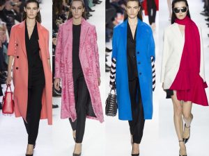 Красный, желтый, оранжевый, синий и зеленый цвета — невероятная палитра, представленная на подиуме, и все это — в сочетании с интересной отделкой и классическими тканями. При этом в каждом варианте чувствуется что-то новое и свежее, в стиле модерн, и нет ощущения, что это уже было, и где-то мы все это уже видели. К примеру, платье с вырезами и косыми срезами со шнуровкой или пальто насыщенного зеленого цвета с голубой шнуровкой.