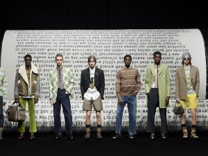 Ким Джонс представил новую мужскую коллекцию Dior в своем родном Лондоне — в выставочном центре Olympia. Вдохновением для нового сезона стали не только архивы Кристиана Диора, но и культура битников и певец «бит-поколения» Джек Керуак — и дизайнер, и писатель, по мнению Джонса, «оба были на стороне молодежи». За кулисами Ким Джонс признавался, что отправной точкой для создания коллекции стало его детское воспоминание о поездке в Beat Museum в Сан-Франциско. 80-метровый подиум выложили копиями рукописи Керуака «В дороге» — книга была впервые напечатана в 1957-м, в год смерти Кристиана Диора, незадолго до того, как за развитие бренда взялся молодой Ив Сен-Лоран, создавший свою Beat Collection. А чтобы попасть на шоу, нужно было пройти сквозь залы с выставкой редких книг из личной коллекции Джонса.