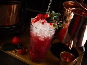 В меню-газете, разработанной Андреем Заставнюком, известным своими экспериментами в Food Embassy и Duran bar, и командой бартендеров и бариста J. Roger & Co, — лучшие классические коктейли, культовые олдскульные миксы в новой интерпретации (так, Bloody Mary готовят на основе запатентованного сочетания 14 ингредиентов, в состав которого входят сливочный хрен, кинза и мед). А также Cuban Cocktails — в память о тех временах, когда Куба стала алкогольной Меккой для американцев, и Celebration Cocktails на игристом вине, и безалкогольные шедевры, вроде Berry Rose Cobbler с каркаде и вареньем из сезонных ягод. Чай и кофе тоже готовятся со вкусом и фантазией: подают и раф-кофе с халвой или мятой, и кардамоновый кофе, и чай с тимьяном, липой, ромашкой, душицей и алтайскими травами.