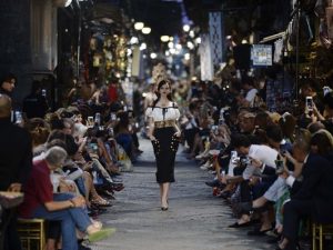 дизайнеры подобрали впечатляющее: временный подиум возвели у знаменитой церкви святого Георгия Армянского в самом сердце исторического центра Неаполя.