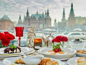 Непременный атрибут традиционного завтрака — яичница, тоже воспетая Пастернаком. «Я предвосхищаю эту сплошную, частыми взрывами надрывающуюся радость, как яичницу на воздухе горячим летним утром, когда все блестки лета выпущены глазком на сковородку: синева — желтком, белком — облако; желтком — листья тополя, белком — дом». В «Гранд кафе» вас ждут два десятка различных блюд из яиц — глазуньи, омлеты с крабами, грибами, форелью или салом, культовое советское отварное яйцо с зеленым горошком и домашним майонезом и фирменный «гоголь-моголь» с гренками из бородинского хлеба и красной икрой.
