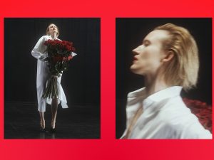 Свободный танец-вдохновение получился очень «ломким», дерганым, стремительным, как и сама коллекция 2021/22. Эффектное сочетание несочетаемого — все эти нивелированные женские и мужские формы, костюмы оверсайз, летящие платья, пальто и куртки в ахроматических оттенках, украшенные яркими вспышками (не только цвета, но и меха, пайеток, вибрирующей бахромы, принтами с бутонами роз) — было запечатлено силами Casper Sejersen Studio.