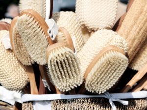 Щетка: Выбирайте щетку с натуральными волокнами с длинной ручкой. Например, BioElixia Pure Cactus Bristle Dry Body Brush, а жесткость подбирайте в зависимости от чувствительности вашей кожи. Никогда не массажируйте поврежденную, обожженную или пораненную кожу и не используйте щетку для массажа лица. Если ваша кожа слишком чувствительна, щетку можно заменить на сухое махровое полотенце! Очищайте щетку раз в неделю мягким средством и хорошо просушивайте после каждого использования.