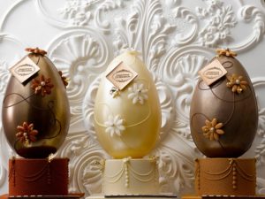 Традиционное пасхальное меню представлено куличами из теста бриошь и шоколадной шкатулкой «Пасхальная наседка»: курочка с шоколадными яйцами внутри из черного, белого или молочного шоколада покрыта шоколадным велюром. А внутри шкатулки на соломке из белого шоколада лежат 2 миниатюрных яйца из черного шоколада пралине, 6 яиц из белого шоколада жиандужа, большое яйцо из белого шоколада и 6 цветочков из пасты.
