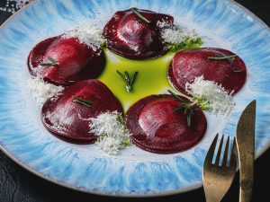 - Тирадито из лосося в свекле и с соусом из маракуйи