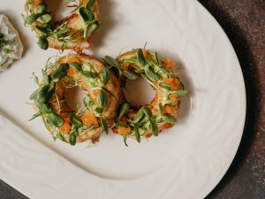 - Говядина с кремом из грибов / хрустящий топинамбур / паста из фундука