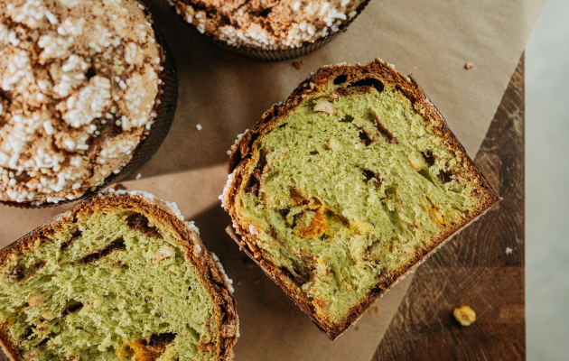 - Авторский шоколадный кулич из сдобного теста с начинкой из шоколадного ганаша и фисташки