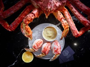Здесь есть икорный и устричный бар. Строганина из нельмы и стерляди, свежая печень трески, неприлично жирная и нежная, легендарная сосьвинская пряная селедка из поселка Березово на Сосьве, притоке Оби, сугудай из муксуна, хрустящая балтийская корюшка, байкальский омуль домашнего холодного копчения, конгрио, запеченая с бакинскими помидорами.