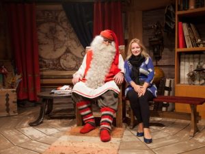 Санта-Клаус и главный редактор Posta-Magazine Татьяна Сабуренкова. «У русских гостей финский Санта спрашивает о Деде Морозе, передает большой привет русскому брату и шлет поздравления».