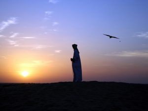 Когда-то охота помогала выживать в пустыне, а сегодня ей занимаются ради спортивного интереса и, конечно, незабываемых эмоций. Представьте, вы среди сияющих на солнце дюн, в руках — сильная, опасная птица, готовая сорваться в полет, едва с нее снимут закрывающий глаза шлем. «Соколы — дикие, очень быстрые и агрессивные птицы, — рассказывает Насир Мухаммад Абдула Латиф, один из лучших сокольничих мира, — если в первые недели тренировок я отпущу сокола и заставлю его летать, когда он не голоден, вполне вероятно, что он никогда не вернется».