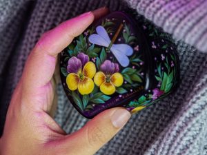 Живопись на миниатюрах исполняется по загрунтованной лаковой поверхности папье-маше, в качестве подкладок используются перламутр, сусальное золото, серебро и металлические порошки, а работа художника над одним изделием занимает от двух недель до нескольких месяцев — и такой подарок может стать не только практичным решением для хранения драгоценностей и важных мелочей, но и настоящим источником вдохновения. К 8 Марта выбирайте миниатюрные шкатулки «Анютины глазки», «Цветы», «Вишенка» — про нежность и дыхание весны.