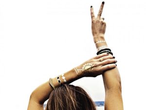 Летом, как никогда, хочется экспериментировать с собственной внешностью. Вид «поцелованной» солнцем кожи так и тянет оттенить металлическим блеском. Но если тяжеловесные украшения мешают вам жить «налегке», попробуйте сверкающие временные тату — абсолютный хит нового сезона.