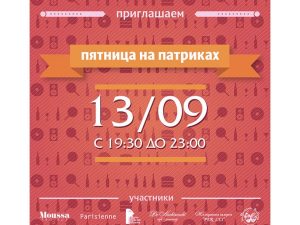 В 19:00 получаем браслеты участников в шоу-руме Moussa Project, магазине Parisienne и ювелирном салоне Per Ley и собираемся в 19:30 во дворе дома № 10 по Большому Патриаршему переулку. Едим бургеры от The Burger Brothers, заказываем напитки от Amber Weiss, участвуем в лотерее от Parisienne и Moussa Project и двигаемся в такт сетам от DJ Krasavin! И не забудьте заглянуть в бутик Parisienne: с 11.00 — 21.00 в рамках Petit Marche любая вещь из прошлых коллекций — 1000 рублей, а бижутерия — 100 рублей!
