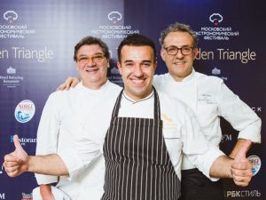 Ежегодный ужин «Golden Triangle», традиционно являющийся самым громким событием московской гастрономической осени, в этом сезоне вновь покорил гостей уровнем творческого огонька. Каждый из поваров представлял свою концепцию, свою философию еды. Обладатель трех звезд Michelin и титулов «Лучший повар Италии, Франции» Массимо Боттура показывал, что его блюда — это проекция его фантазии, образов памяти, сильных впечатления от природы и искусства.