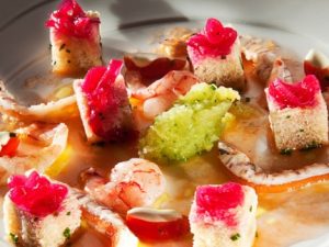 Экспериментирует шеф с рыбой — продуктом, который у лондонцев давно «обижен», ибо блюда с ней практически исчерпываются незатейливым национальным фиш-энд-чипс. Теперь же в консервативной «рыбной гастрономии» Лондона расцветут современные кулинарные техники, заветы домохозяек Апеннин и находки поколений шеф-поваров одной из самых почитаемых кухонь мира. Темпура из гребешков в чернилах кальмара в раковинах, с молодыми кабачками, теплое карпаччо из морского судака с лимоном и картофельным пюре…