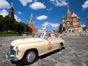 Словно бы сошедшим с ретро-открыток автомобилям предстояло проехать по самым живописным улицам центра Москвы: разнообразные модели советского автопрома 1930–1970 годов и один заграничный гость — Rolls-Royce Silver Cloud 1962 года, на котором в ралли участвовала команда часовой мануфактуры Vacheron Constantin во главе с генеральным директором Хуаном-Карлосом Торресом, красовались на старте в ожидании сигнала к началу гонок. Здесь же прогуливались экипажи, часть из которых преобразилась в известных киногероев: вот Лелик и Семен Семенович из «Бриллиантовой руки», а из хлебного фургона ГАЗ-АА из фильма «Место встречи изменить нельзя» посматривают на прохожих участники банды «Черная кошка». Кстати, этот автомобиль 35 лет простоял на киностудии, а к ралли был полностью восстановлен.