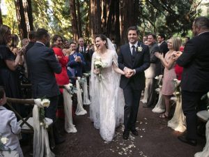 По словам Хилари, вдохновение для оформления торжества она черпала в природе — и именно поэтому «декорацией» для свадьбы стал национальный парк с секвойями, расположенный в Калифорнии. Стилистика ее наряда также была продиктована природной темой — такой же вневременной, как и многовековые деревья, между стволами которых был организован алтарь.